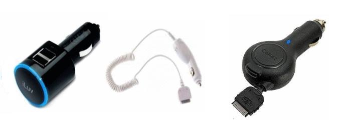 Best car chargers for iPhone like PowerJolt, Belkin Micro Charger, Just Wireless car charger, and iLuv Dual USB car charger.