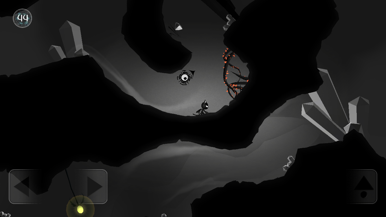 While you are playing there is this eyeball thing that helps guide you. When you’re flipping and flailing all over the caverns it can be tough to tell which way you’re supposed to go. The eyeball points you in the direction of the exit and also acts as a pause button and a way to restart the level.